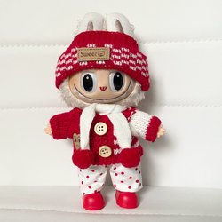 Mycket fina stickade kläder och hängsmycke hjärta som passar till Labubu dockor 15-17 cm som innehåller följande: