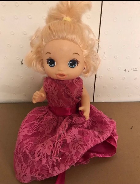 En söt docka med blont hår och en vacker rosa klänning. Perfekt för lek och samling.
