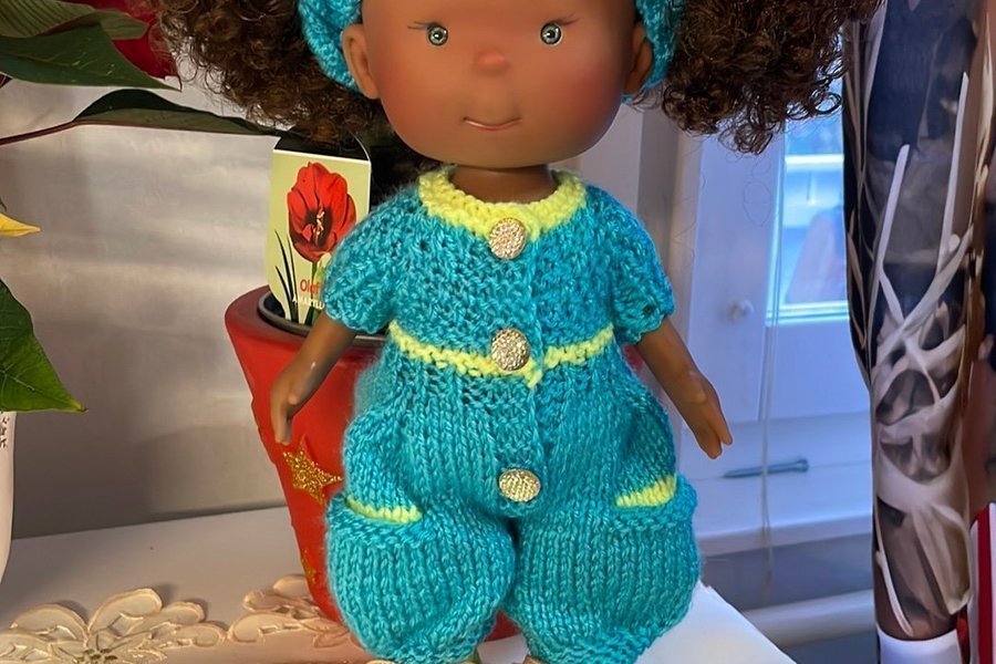 Virkade jumpsuit och hårband för spanska dockor Pipa 30 cm eller något liknande.
