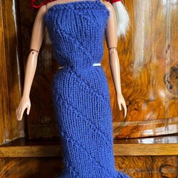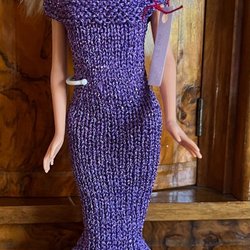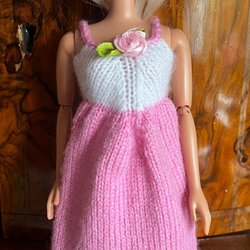 Bikini med tillhörande bag, keps och filt, stickad i Minicryl ett tunt mjukt babygarn. Stickade kläder är lätta för små fingrar att ta av och på. Garnet jag stickar i är tunt vilket gör plagget finare än med grövre garn. Mycket välstickad. Bild nr 3 visar ryggen på dockan dvs inga knappar.