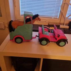 Barbie bil och vattenflaska