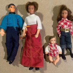 Set PROTOCOL med sex robotar i en förvaringsväska. Väskan har ett tryck med robotar och galaxer.