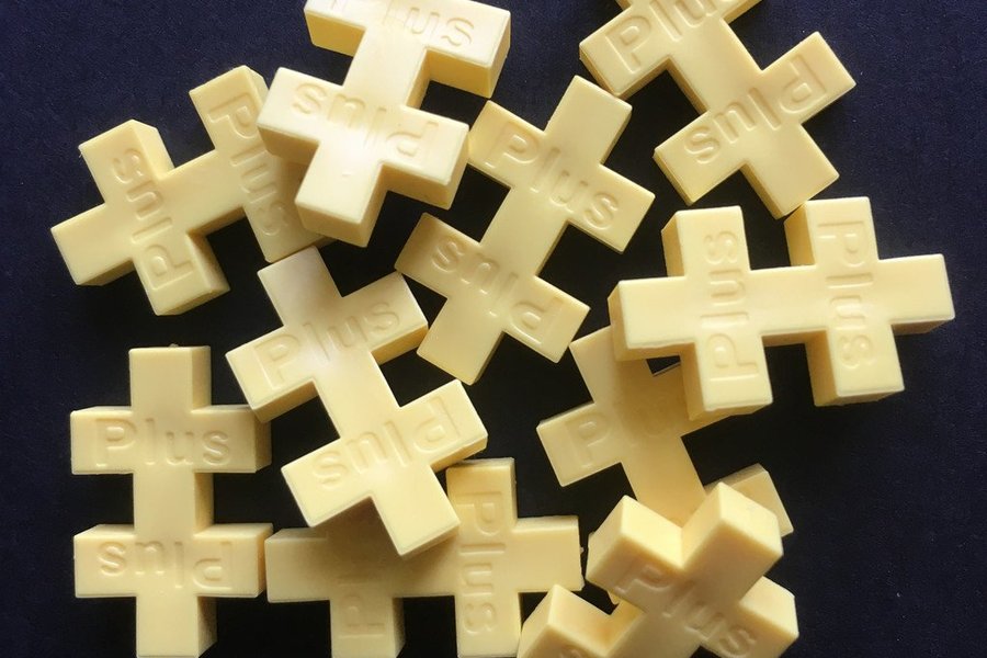 Plus Plus är roliga byggbitar i plast. Varje bit ser ut som två ihopsatta plustecken.