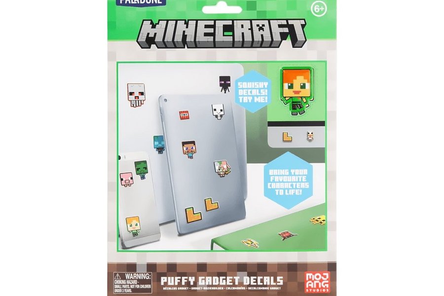 Let the pixelated world of Minecraft take over your phone, laptop and gaming console with these Minecraft Puffy Gadget Decals.