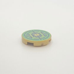LEGO, Kakel, rund, dekorerad, Gul, ID: 4150p02