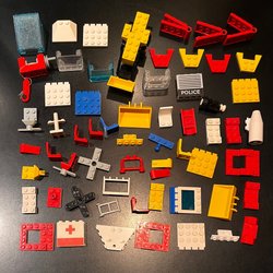 Ett sortiment av Lego-bitar i olika former och färger. Perfekt för att bygga och skapa egna konstruktioner.