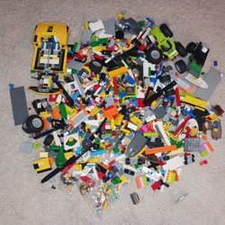 Ett stort parti med blandade Lego-bitar i olika färger och former. Perfekt för den kreativa byggaren eller för att komplettera befintliga Lego-samlingar.