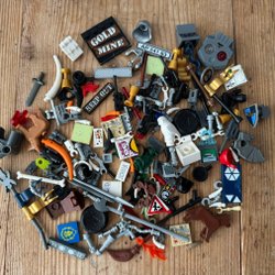 Diverse Lego tillbehör och vapen. Perfekt för att komplettera din Lego samling eller för att skapa nya äventyr.
