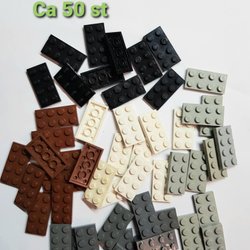 Ett set med vita LEGO-plattor i olika storlekar.