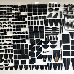 Ett varierat paket med specialdelar i mörkgrått – perfekt för byggen inom sci-fi, Star Wars, Marvel eller arkitektoniska modeller!