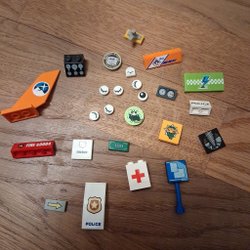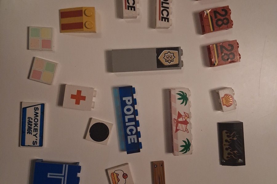 Diverse tryckta legobitar. En del är klostermärken en del tryck. Vad du ser är det som ingår