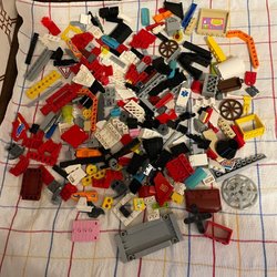 Lego bitar i blått, grått och vitt. Perfekt för den som vill bygga och skapa. Smuts damm o trasiga bitar kan förekomma