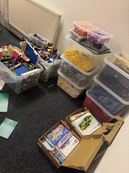 Stor samling Lego i olika färger och former. Inkluderar även instruktionsböcker. Ca 60 kg totalt