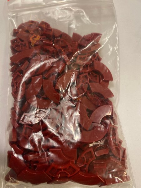 En påse med röda legobitar. Perfekt för den som vill utöka sitt legosamling