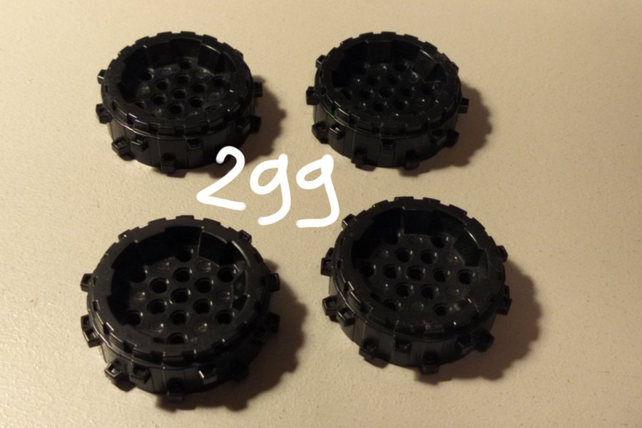 Fyra stycken Lego Technic hjul.