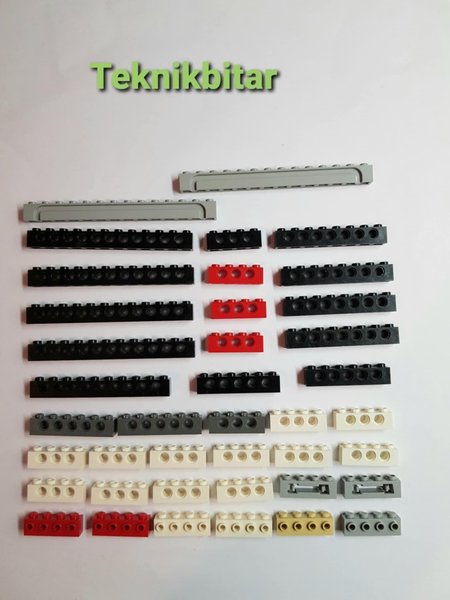Ett sortiment av Lego Teknikbitar i olika färger och storlekar. Perfekt för att bygga och konstruera.