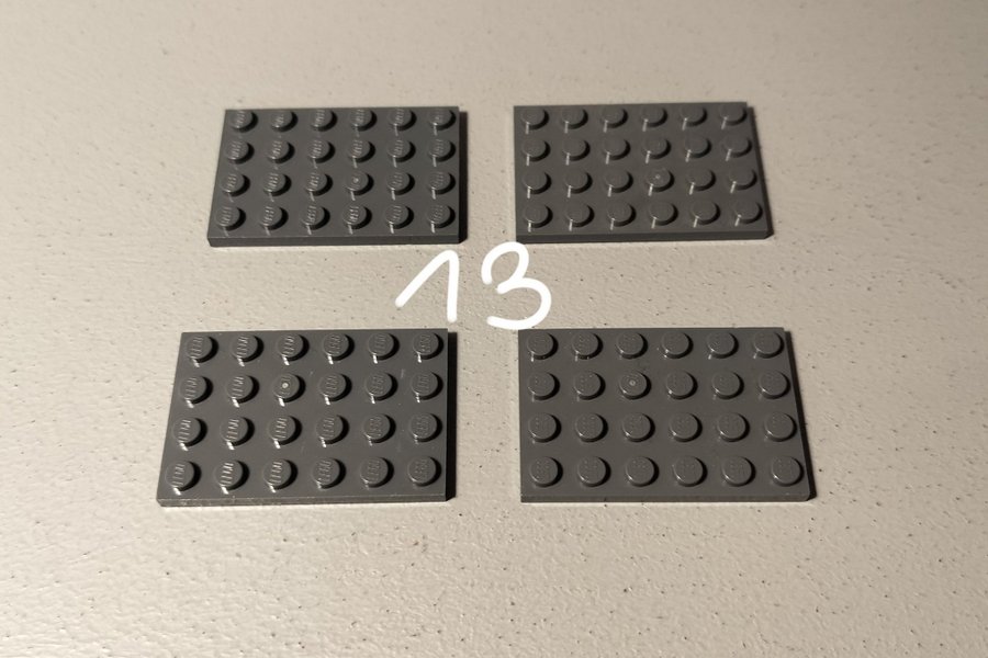 Fyra stycken grå Lego basplattor. Perfekt för dina Lego byggen.