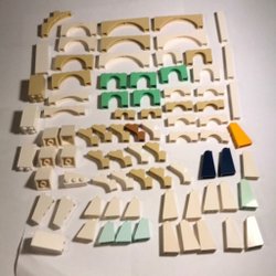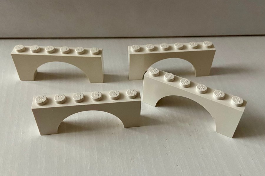 Fyra vita LEGO bågar Dessa bågar kan användas för att bygga broar, valv eller andra konstruktioner i dina LEGO-skapelser.