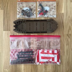 En annan påse innehåller gröna Lego-plattor och andra gröna byggdelar.