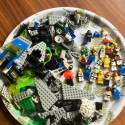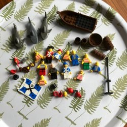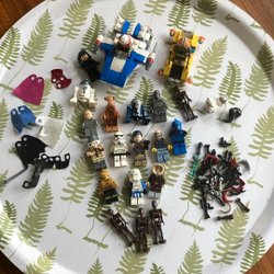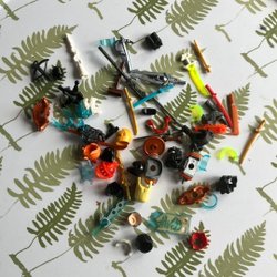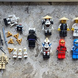 Ett gäng Lego Ninjago minifigurer och tillbehör. Sprickor o smuts kan förekomma brickan ingår ej