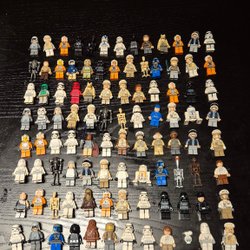 Stor samling av Lego minifigurer. Innehåller en mängd olika karaktärer och teman.