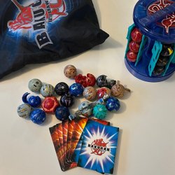 Bakugan samling med figurer, kort och tillbehör. Perfekt för Bakugan-entusiaster.