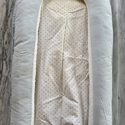 Rött solskydd med svarta prickar från Dooky. Går att använda till barnvagn och babyskyddet i bilen. Enkelt att fästa och använda.