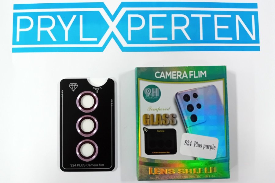 Kameraskydd till Samsung Galaxy S24 Plus. Kameraskyddet är tillverkat i 9H stark härdat glas med hög klarhet för att skydda kameralinserna effektivt. Linsskyddet är enkelt att montera och är bubbelfri.