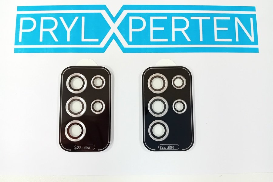 Kameraskydd till Samsung Galaxy S22 Ultra. Kameraskyddet är tillverkat i 9H stark härdat glas med hög klarhet för att skydda kameralinserna effektivt. Linsskyddet är enkelt att montera och är bubbelfri.