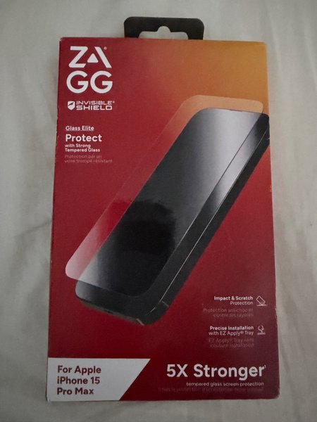 ZAGG InvisibleShield Glass Elite skärmskydd för Apple iPhone 15 Pro Max. Tillverkat av starkt härdat glas för att skydda mot stötar och repor. Enkel installation med EZ Apply Tray. Ordpris 299kr