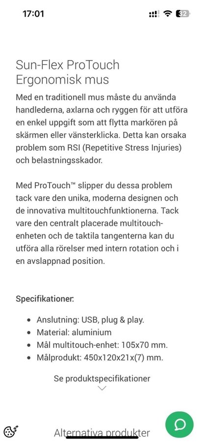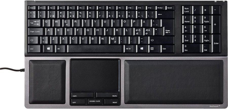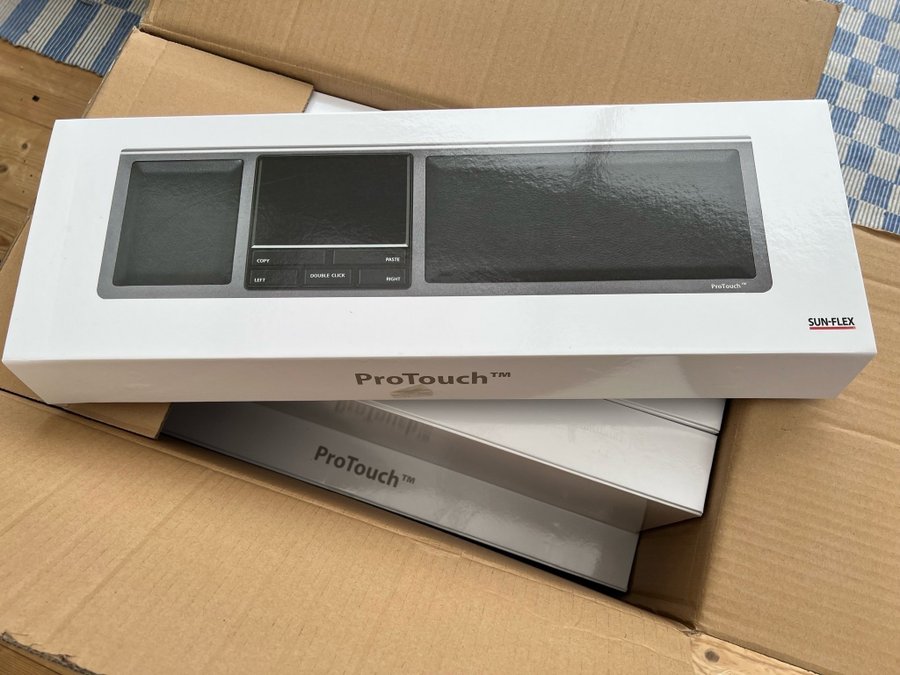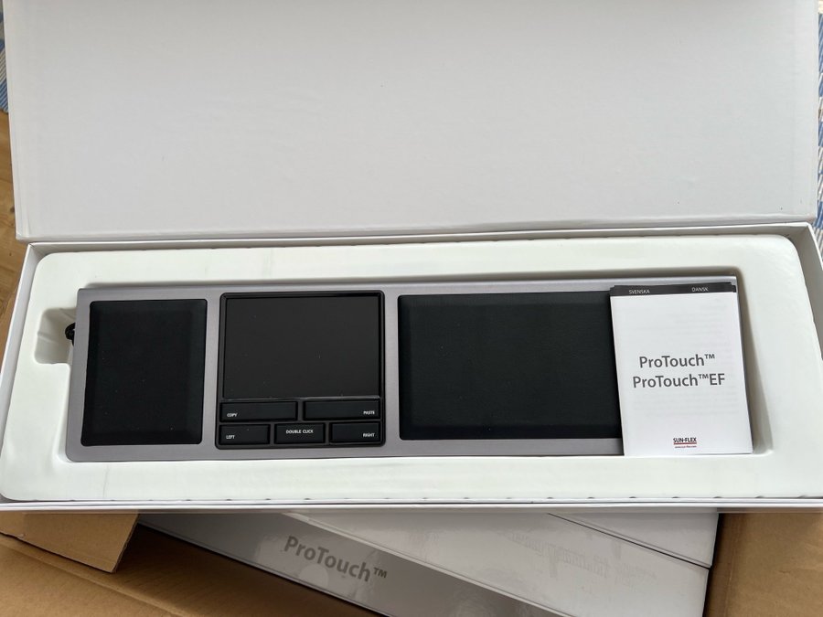 Sun-Flex ProTouch ergonomisk mus. Med traditionell mus måste du använda handlederna, axlarna och ryggen. Med ProTouch slipper du dessa problem tack vare den unika, moderna designen och de innovativa multitouchfunktionerna. Tack vare den centralt placerade multitouchenheten och de taktila tangenterna kan du utföra alla rörelser med intern rotation och i en avslappnad position.