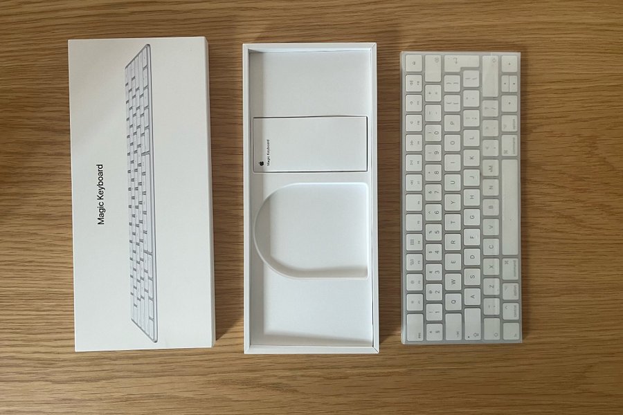 Apple Magic Keyboard trådlöst, modell A1644, originalkartong och manual ingår.