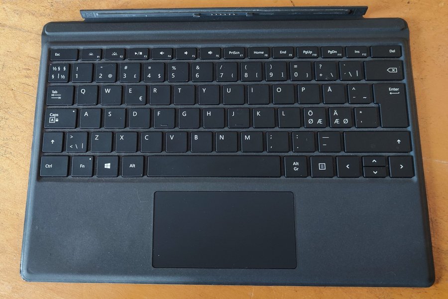 Tangentbord till Microsoft Surface Pro med pekplatta. Svensk layout. Fullt fungerande med lysande tangenter.
