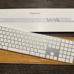 Apple Magic Keyboard. Tangentbord med numerisk del och nordisk layout. Ansluts trådlöst via Bluetooth.