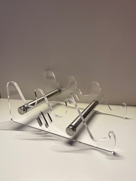 Ställ i akryl med metallstänger för tangentbord, men passar för surfplattor, kokböcker eller liknande.