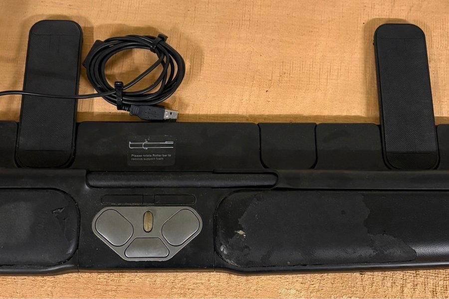 Contour RollerMouse Pro är en ergonomisk mus som placeras framför tangentbordet. Den är utformad för att minska belastningen på händer, armar och axlar genom att låta användaren styra markören med en rullstång och knappar centralt placerade. Denna modell ansluts via USB.