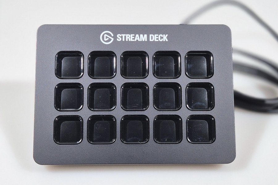 Elgato Stream Deck med 15 anpassningsbara LCD-tangenter för att styra dina favoritverktyg och plattformar.