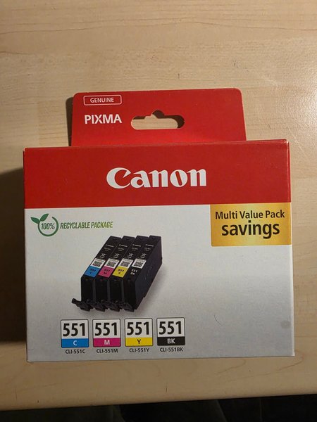 Canon Pixma bläckpatroner, multipack. Innehåller färgerna cyan, magenta, gul och svart. Modell CLI-551.