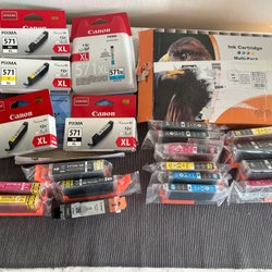 Box med diverse skrivarpatroner