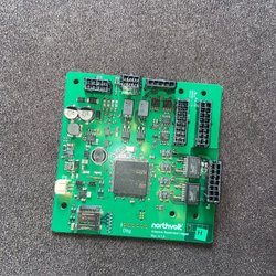 Elektronikkort med diverse komponenter som ARM processor, Pulse transformator, och SM91527L-kretsar. Märkt med STM32F746ZGT6, RM48 L952DPGET YFD-SSA0YDW och SCU FP2127 019946.
