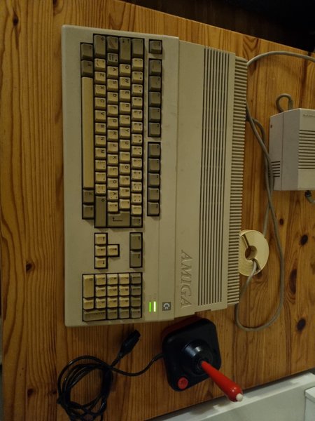 Amiga dator med joystick och strömadapter. Jag tror att det är en Amiga 500, men är osäker. Saknas eventuellt någon del, vet inte säkert då jag inte minns exakt vad som behövdes till denna dator. Saknar dessutom flera sladdar så har inte kunnat testa den, men den tar ström och startar med strömkabel.