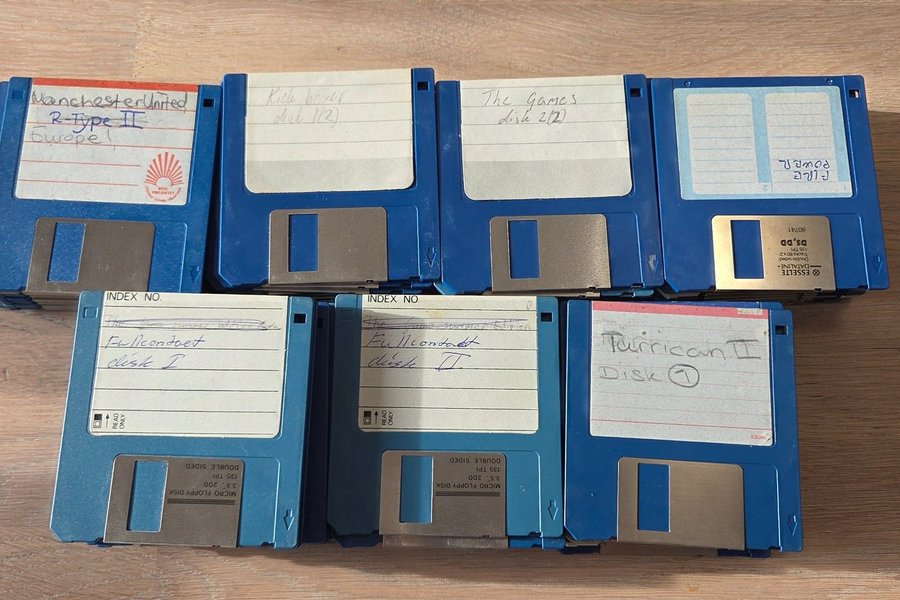 Ett 70 tal disketter, fick med när jag köpte ett Amigapaket, kom snabbt fram till att jag hellre vill ha modernare sätt att ladda mina spel så säljer av dom, testat nån enstaka och fått dom att funka men kan inte garantera att alla funkar.