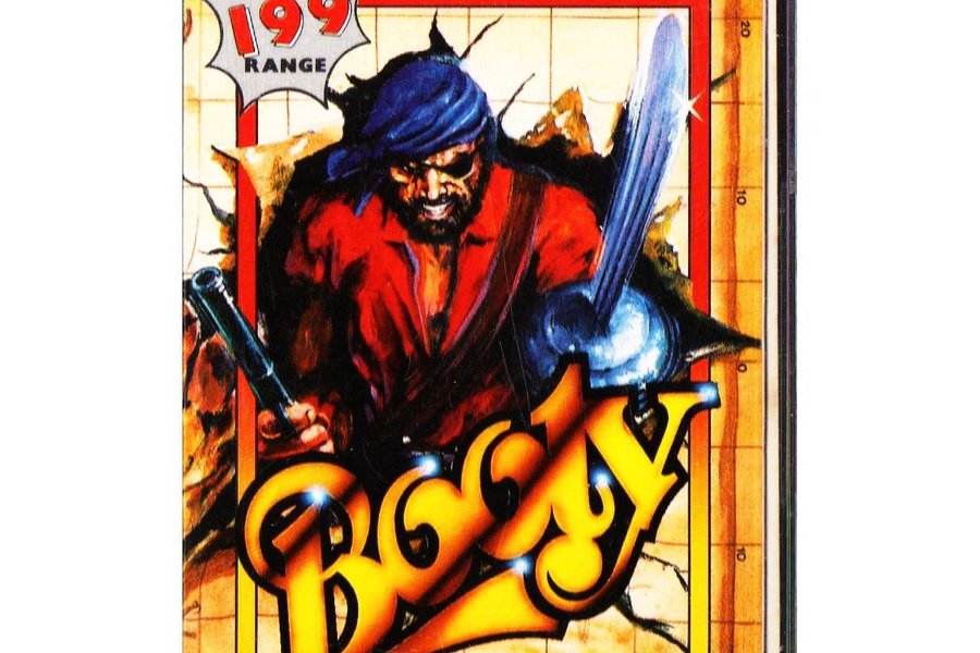 Like any good pirate ship, the old vessel upon which Booty is set is overloading with treasure and so the player takes the role of Jim the Cabin Boy as he tries to collect as much of it as he can. The ship is viewed side-on in a platform-type perspective, and contains 20 holds, each of which is split across 8 screens of treasure. Once the player has cleared each one they have 45 seconds to escape the hold and prepare for the next one.