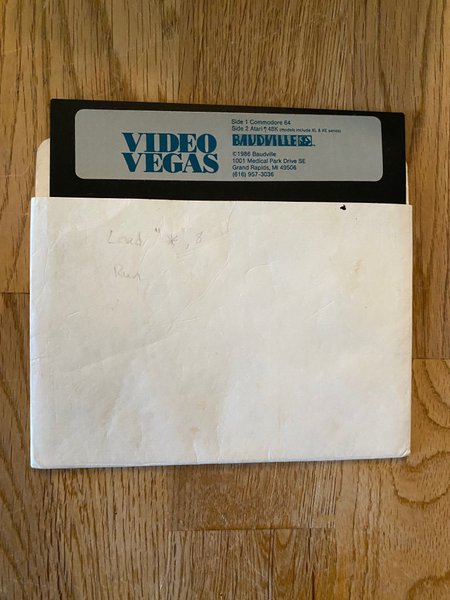 Disketten innehåller spelet Video Vegas, kompatibelt med både Commodore 64 och Atari 48K (inklusive XL & XE-serien). Utgiven av Baudville 1986.