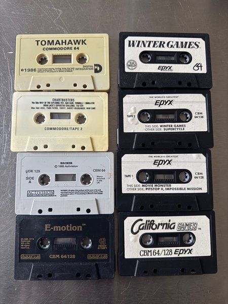 Samling af kassettebånd til Commodore 64 og 128. Indeholder spillene