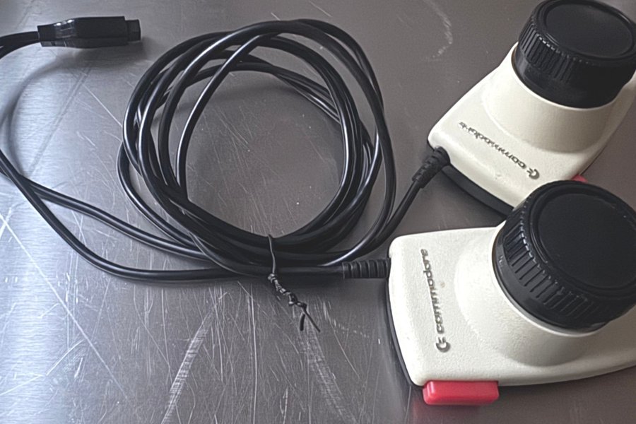 Commodore 1312 paddles til Commodore 64 og VIC20. Virker blandt andet til spil som Arkanoid. Renset og klar til brug
