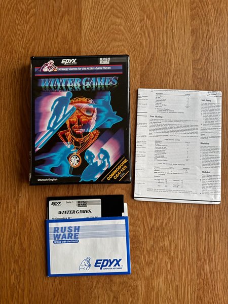 Winter Games til Commodore 64. Spillet er på diskette. Spillet er testet til opstart.