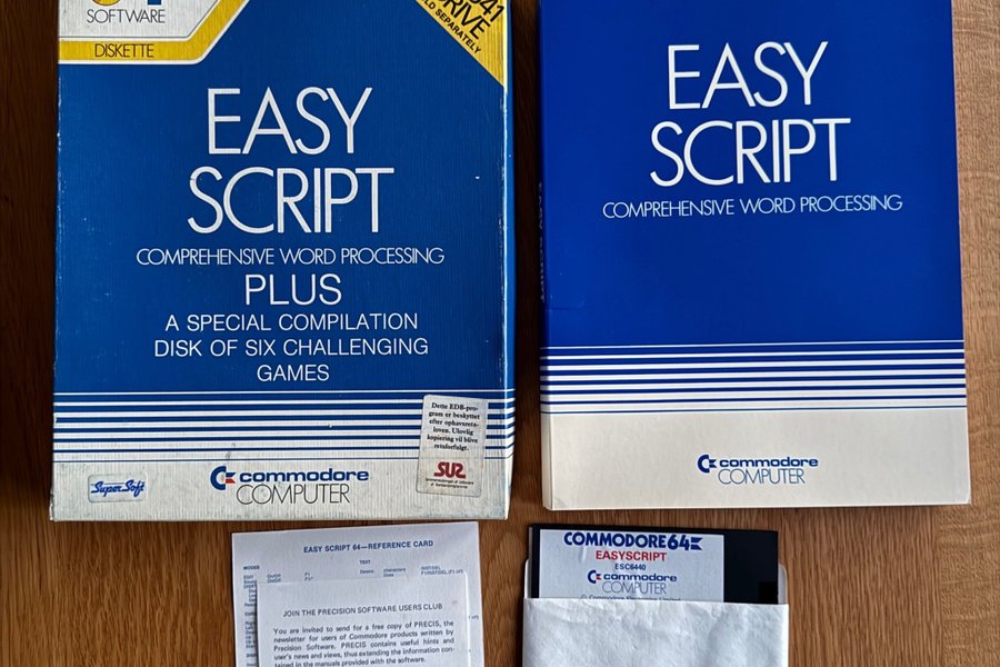 Easy Script Comprehensive Word Processing Plus. Manual medfølger. Er testet til opstart.