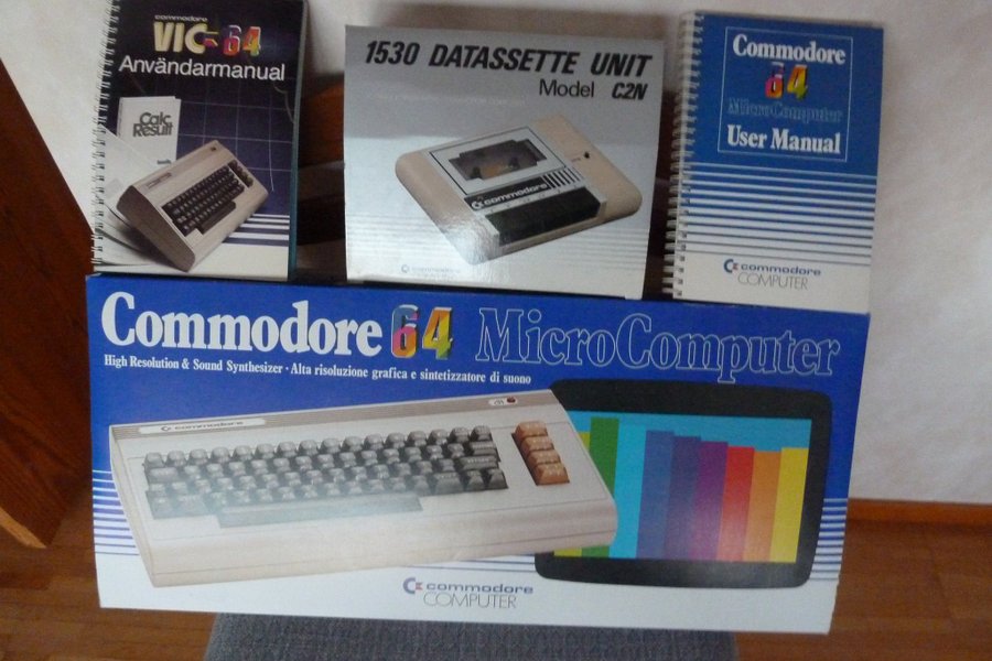 Commodore 64 MicroComputer med 1530 Datassette Unit Model C2N, Commodore 64 Micro Computer User Manual och VIC-64 Användarmanual svensk.