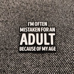 Brosch som fästs med nålanordning på baksidan. Press play on tape. Commodore 64. Se gärna mina andra annonser, jag samfraktar inom en vecka.